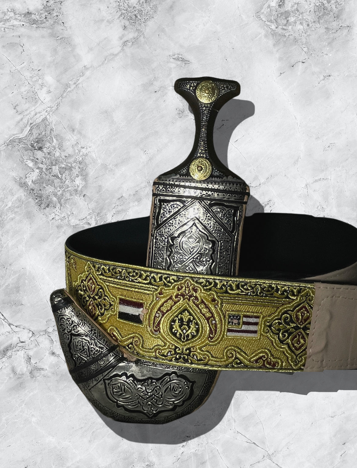 The Silver Jambiya is a classic. The intricacies and details in both the Jambiya and Belt make this a statement piece.